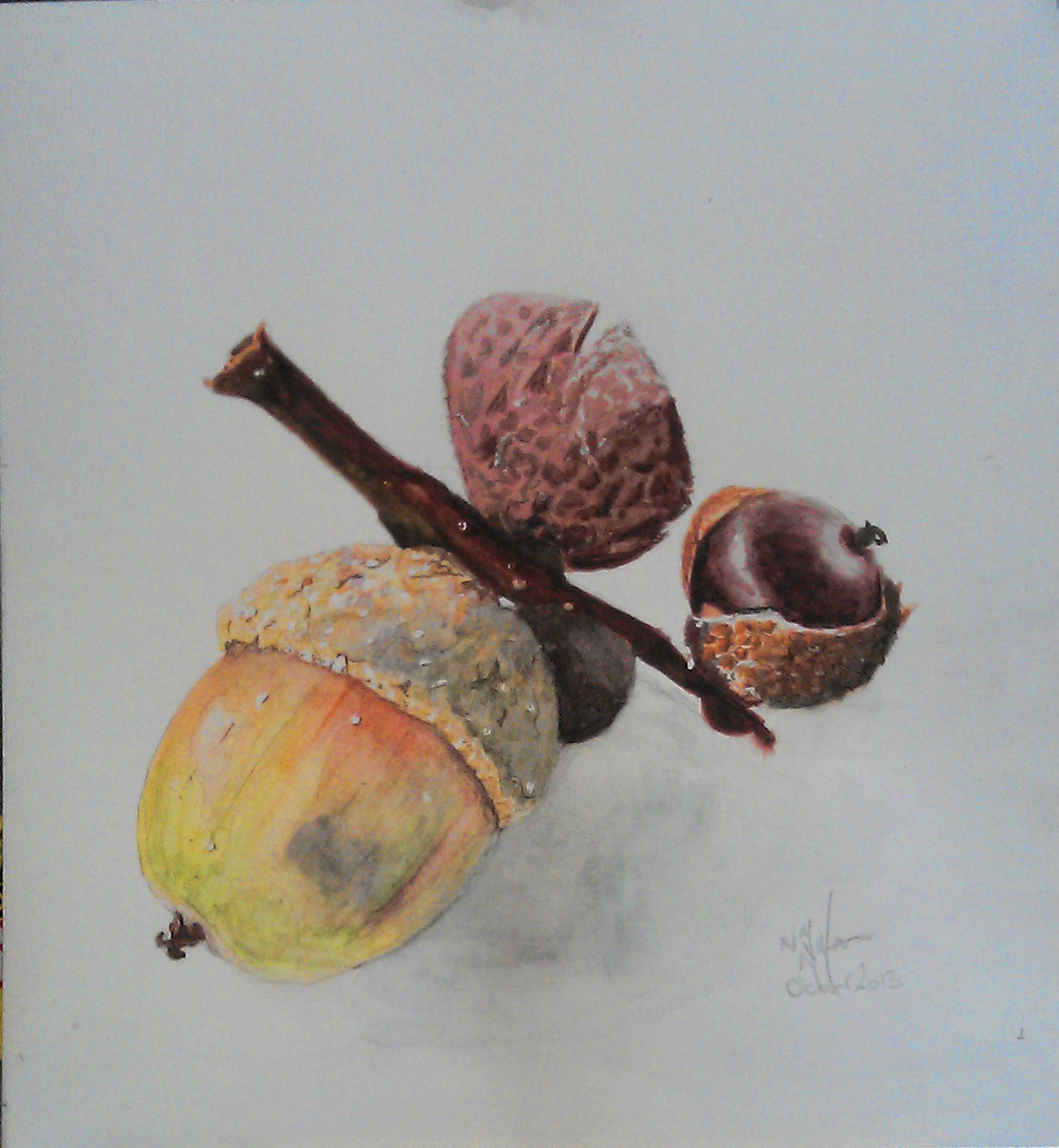 I was in Speke Hall the other day with my daughter. Whilst she ran around like a lunaticand played on the climbing frame, I took the chance to catch up on some gentle sitting around doing nothing. I was comfortable under an old oak tree and being the right time of year noticed quite a few acorns around. After picking my way through them I brought one home…