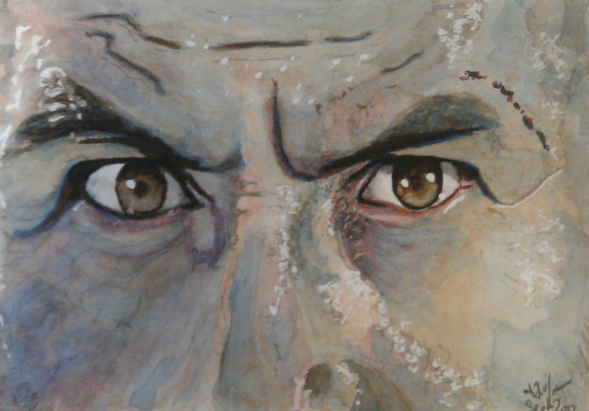 And I thought “But that will make my details all run?” So like a fool I trusted the experienced artist and washed all over the painting and guess what – a whole bloody hour wasted and the mountians details lost for all time. You can’t remove paint once it’s on, so all I coulddo was paint overwith rough details instead. Sooooo annoyed.